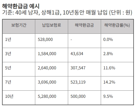 마지막으로는 해약환급금 예시를 보겠습니다.