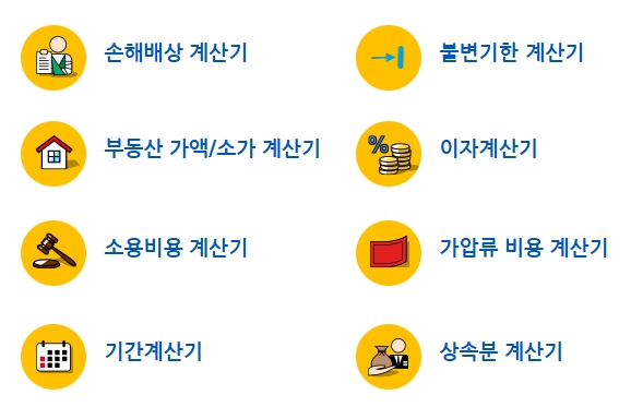 홈페이지(로탑)에 접속하시면 다양한 서비스들을 확인할 수 있는데요, 그중에는 다양한 법률계산기도 제공하고 있습니다. 해당 계산 기능들은 주로 로펌에서 전문가들이 사용할 것을 염두에 두고 만들었기 때문에, 부담없이 편리하게 활용하시면 된다고 하네요.