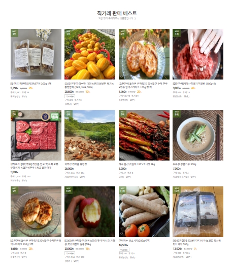 홈페이지(친환경농산물 직거래 1번지 참거래농민장터)에 접속하시면 메인화면에서 직거래 판매 베스트, 참거래 추천, 인기 급상승 직거래 상품, 지금 NEW, 참거래 스토리, REVIEW를 확인하실 수 있습니다. 또한, 상단의 다양한 카테고리를 열람하고 상품들을 구매할 수 있으니 참고하세요.