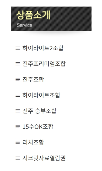 로또일보에서는 하이라이트2조합, 진주프리미엄조합, 진주조합, 하이라이트조합, 진주승부조합, 15수OK조합, 리치조합, 시크릿자료열람권과 같이 다양한 상품들이 있습니다.